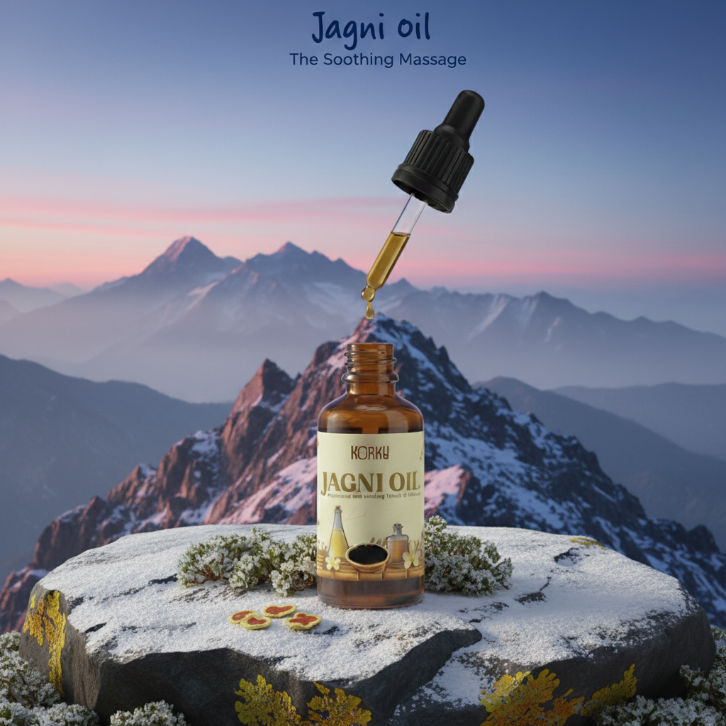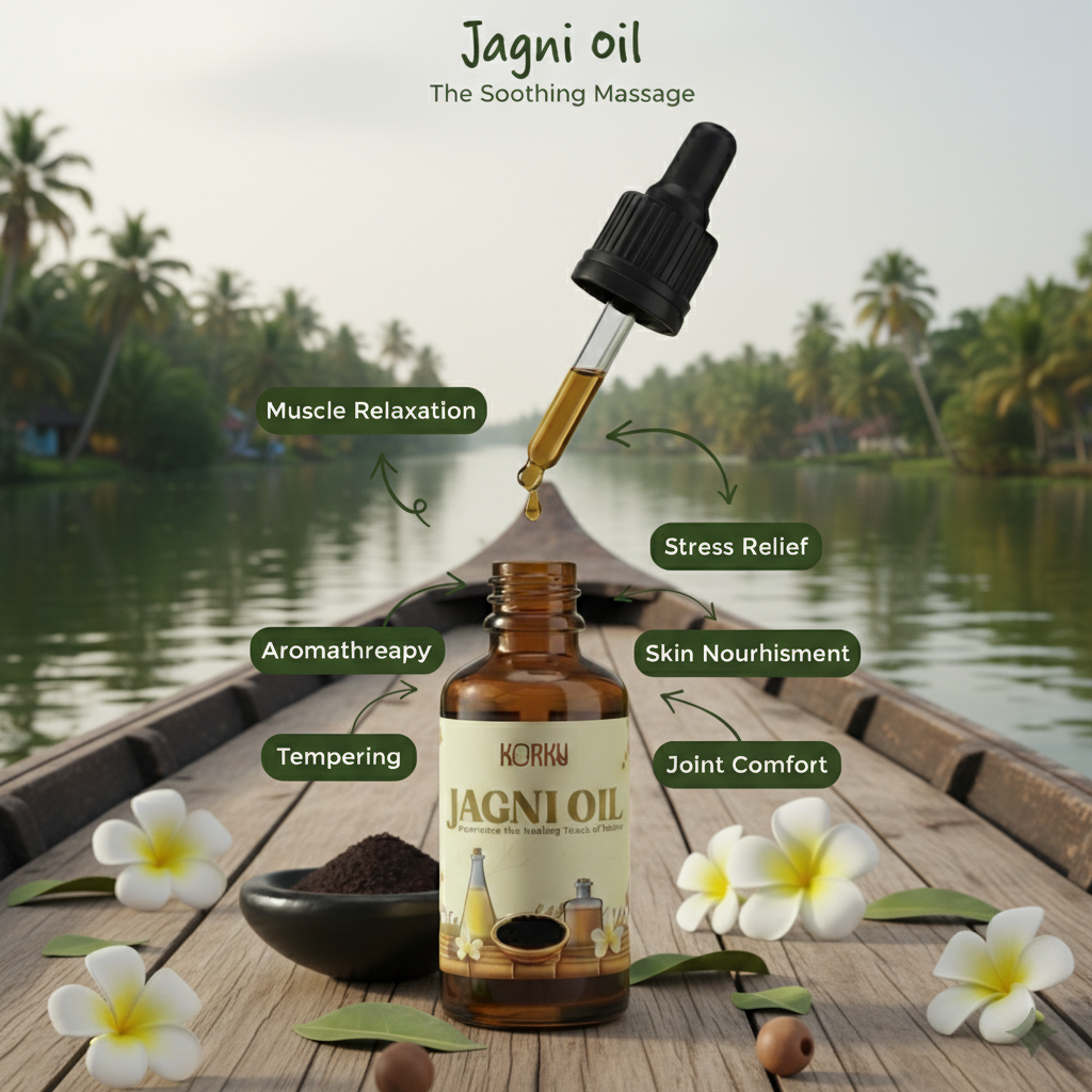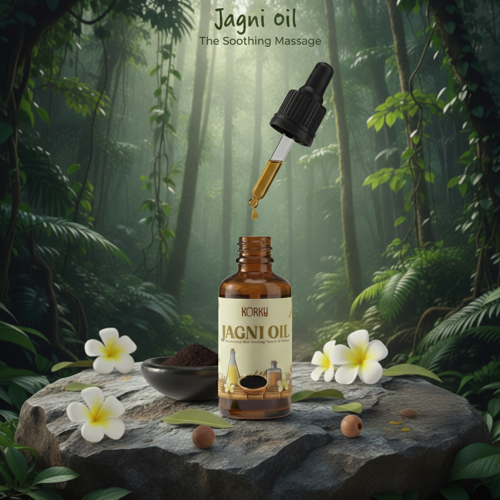 KORKU Jagni Oil is a traditional herbal massage oil crafted from forest-sourced ingredients, carrying the healing touch of nature. Trusted for generations, this multipurpose oil helps in: